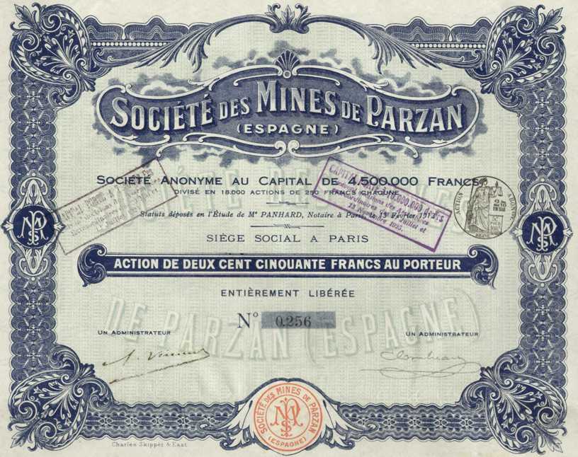 Acción de dividendo. Constituida en Madrid, según Escritura Pública otorgada ante el notario de esta Capital Don Luis Castro Rodríguez el 10 de diciembre de 1919. Capital 3.500.000 Pesetas.Amliado a 4.500.000 Pesetas por acuerdo de la Junta General Extraordinaria celebrada el 22 de agosto de 1922. Dividido en 2.000 acciones privilegiadas de 500 Ptas. y…