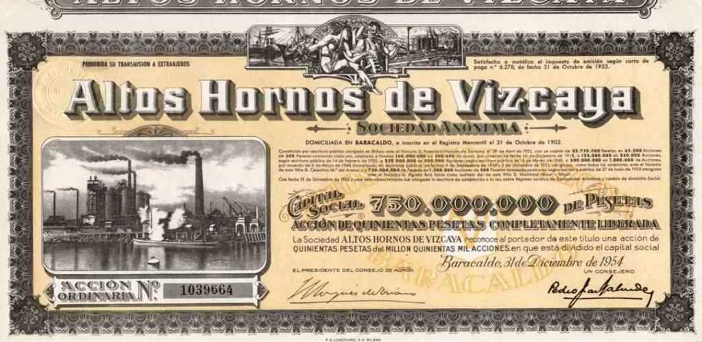1954 Acción de 500 Pesetas completamente liberada.