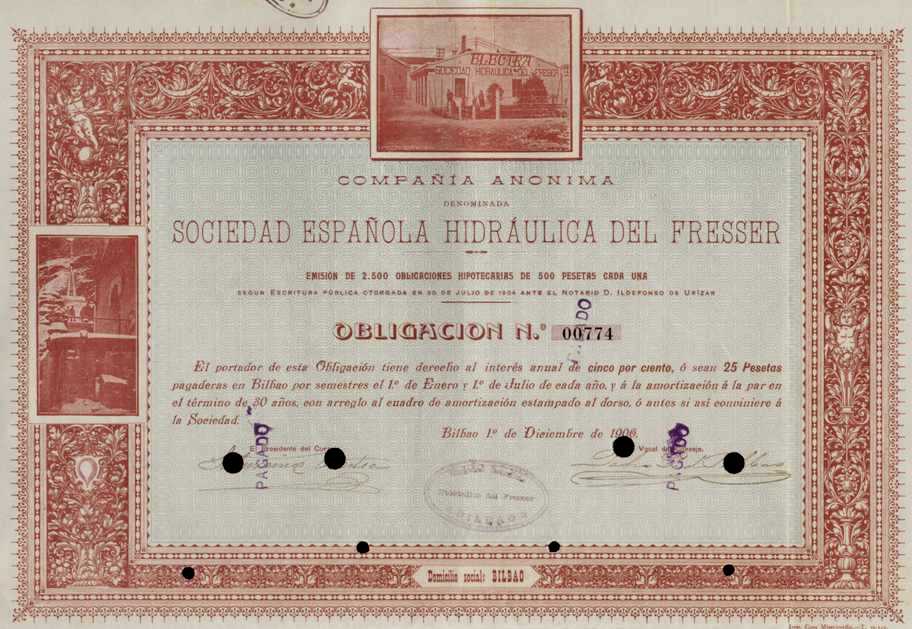1906 Obligación de 500 pesetas.