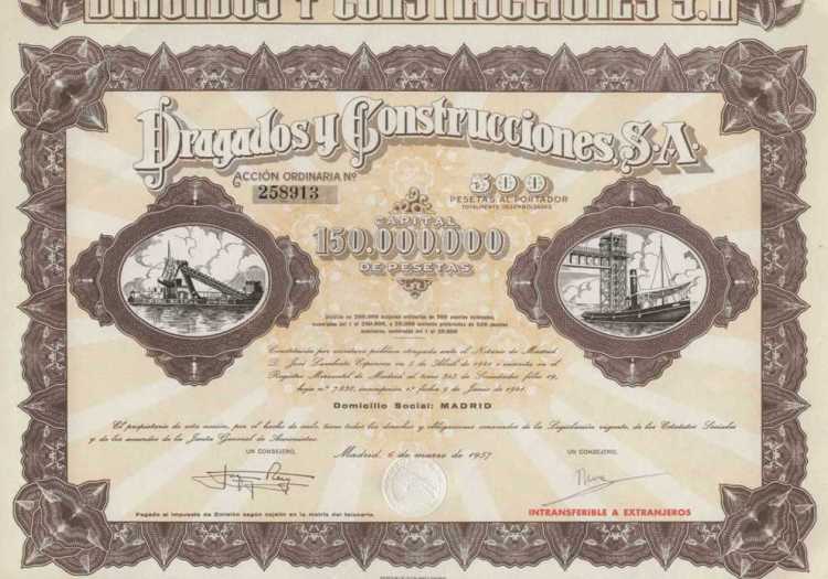 1957 Acción al portador de 500 Pesetas