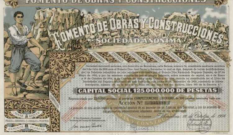 1956 Acción de 500 Pesetas nominales al portador, completamente liberada.