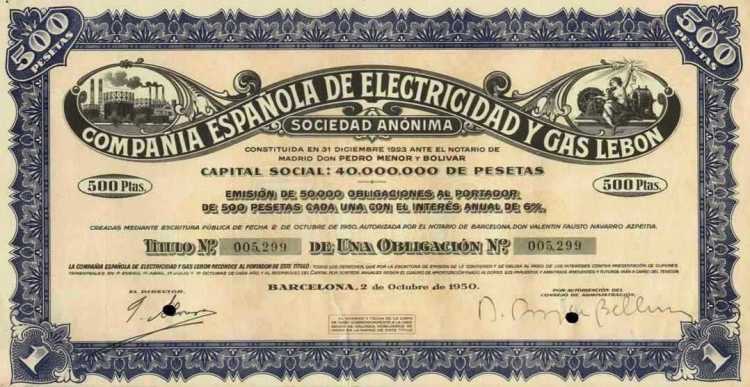 1950 Título de una Obligación de 500 Pesetas al 6%