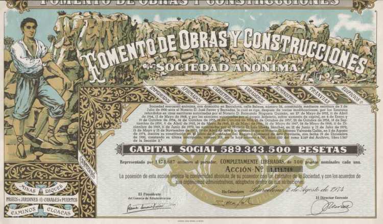 1974 Acción de 500 Pesetas nominales al portador, completamente liberada.