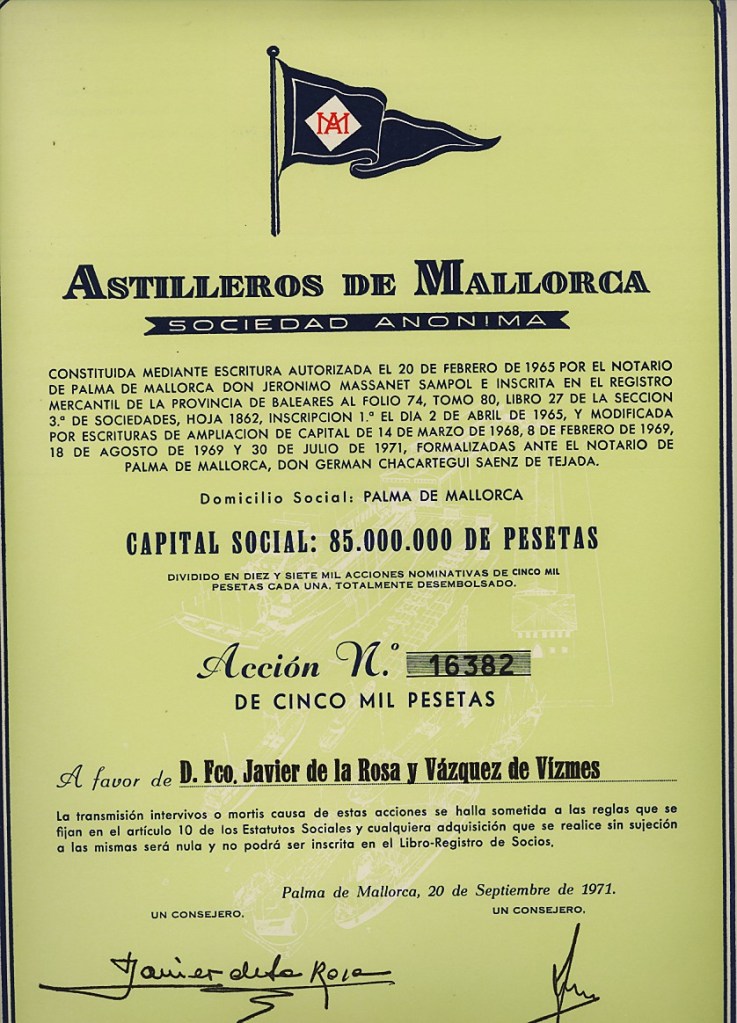 1971 Acción de Cinco Mil Pesetas Nominativa.