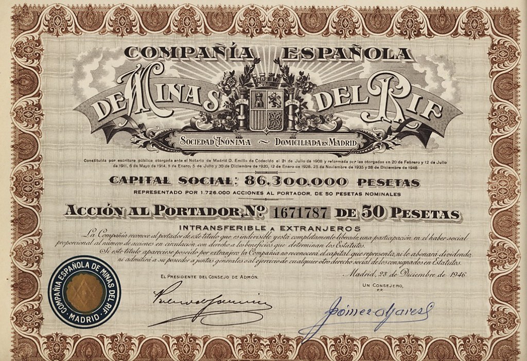 Consulte otros títulos de la Compañía Española de Minas del Rif también en este sitio.