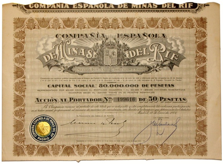 Consulte otros títulos de la Compañía Española de Minas del Rif también en este sitio.