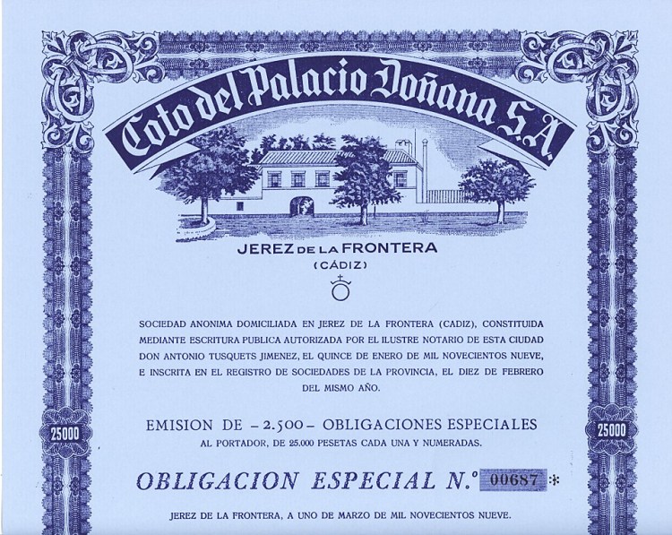 1909 Obligación Especial de 25.000 Pesetas, numerada.