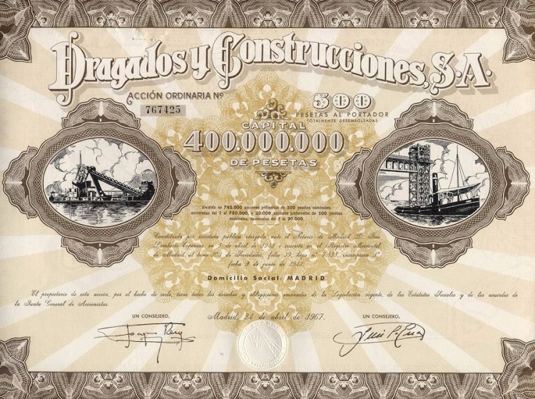 1967 Acción al portador de 500 Pesetas