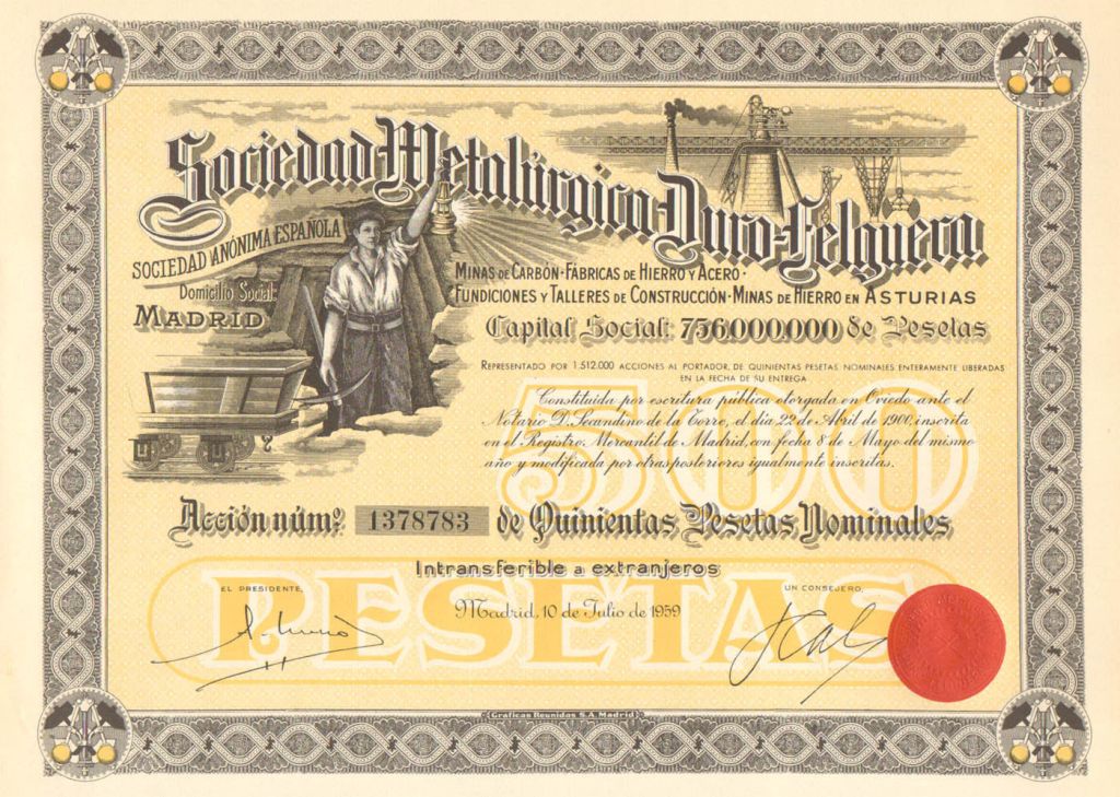 1959 Acción de 500 Pesetas Nominales
