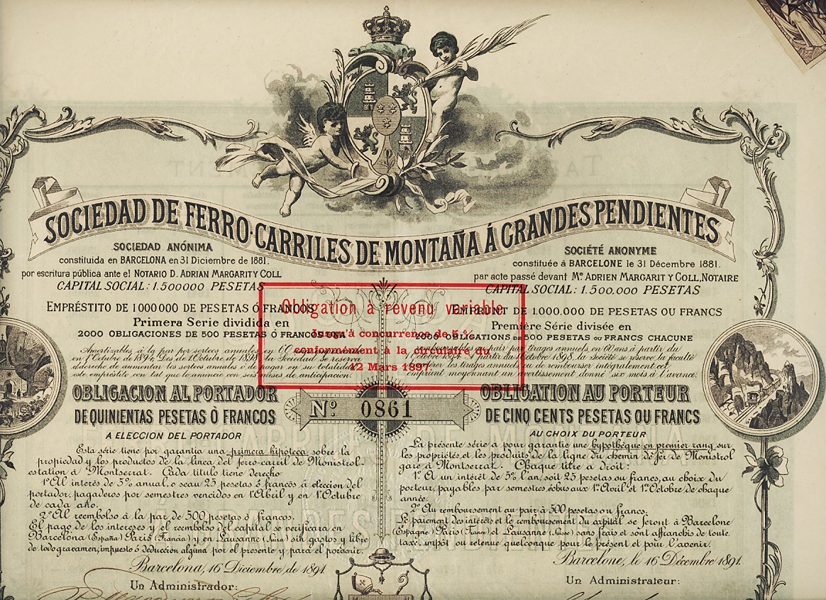 1891 Obligación al portador de 500 Pesetas ó Francos al 5% anual