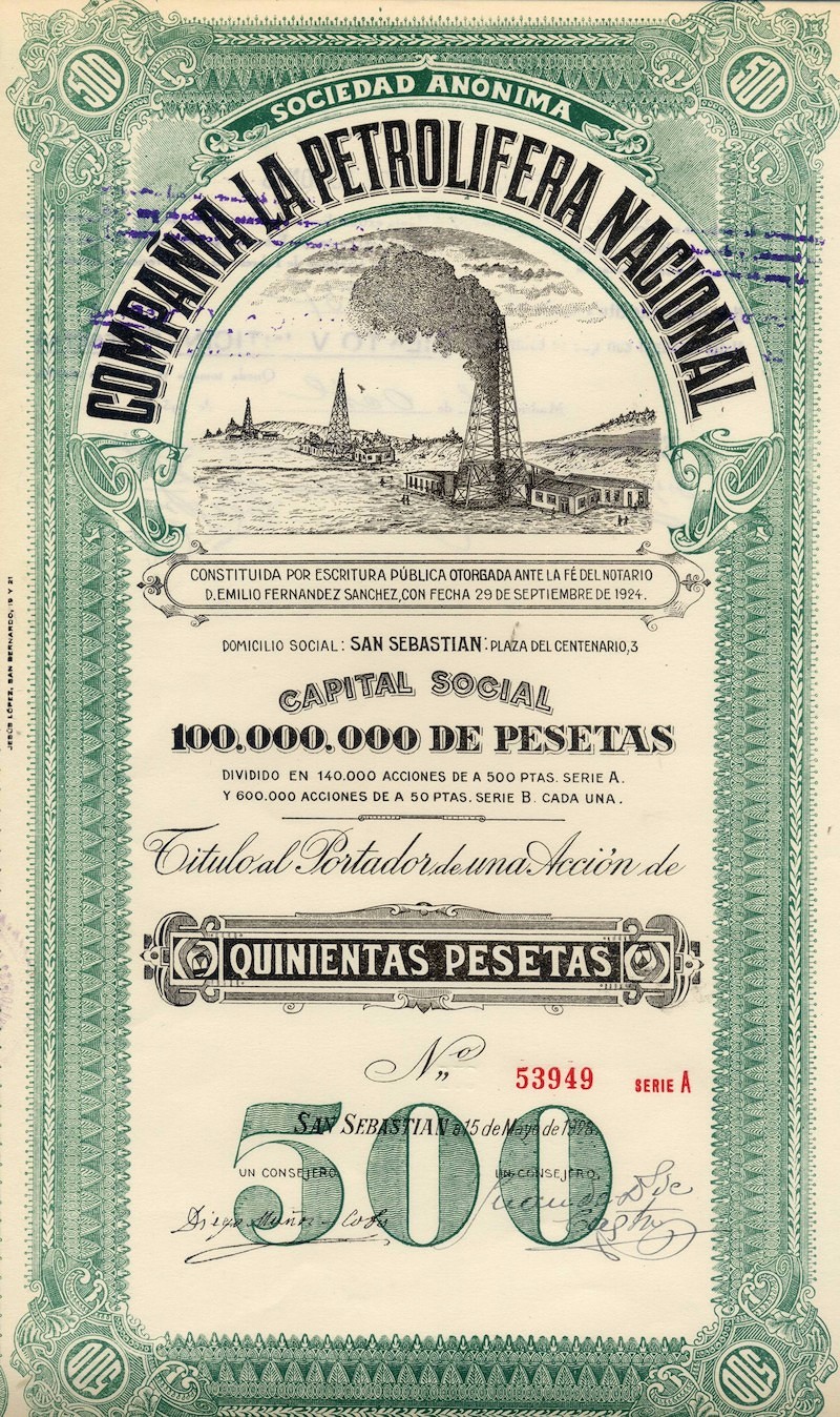 1925 Título al Portador de una Acción de 500 Pesetas