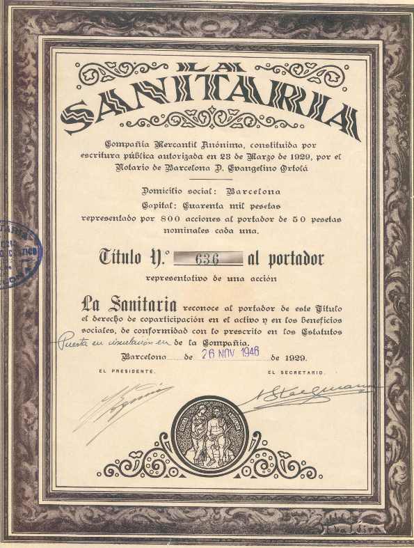 1929 Acción al portador.