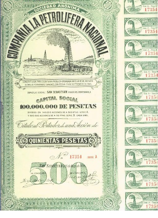 1928 Títulos al Portador de una Acción de 500 Pesetas