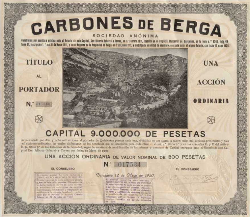 1930 Una acción ordinaria de valor nominal 500 pesetas. Curiosidad, incluye fotografía, nada habitual.