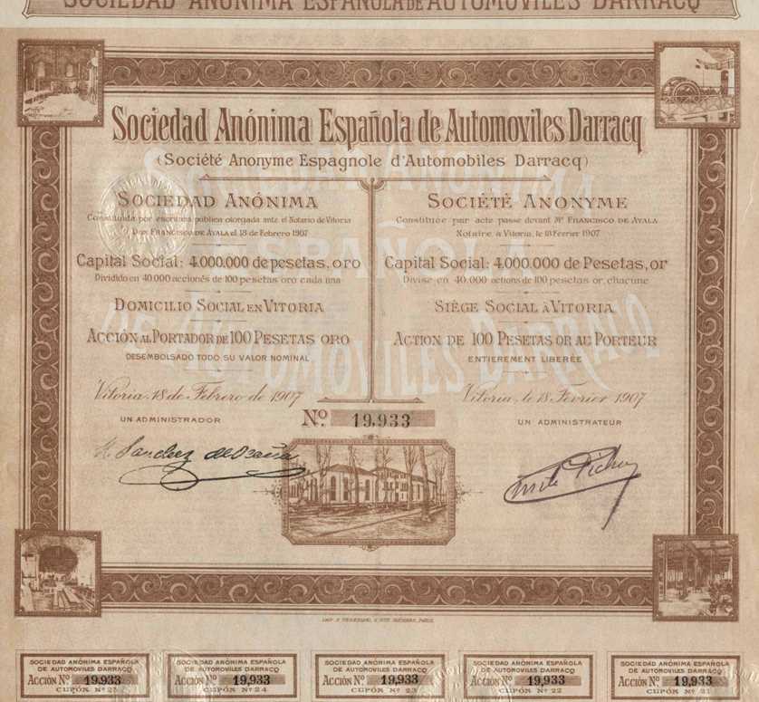 1907 Acción al Portador de CIEN Pesetas Oro. Curiosidad, Pesetas Oro.
