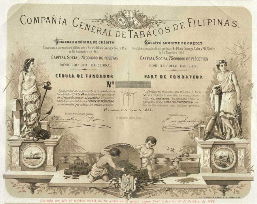 Compañía General de Tabacos de Filipinas Sociedad Anónima de Crédito. Cédula de Fundador