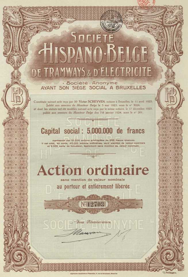 Societé Hispano Belge de Tramways e de Electricité Societé Anonyme