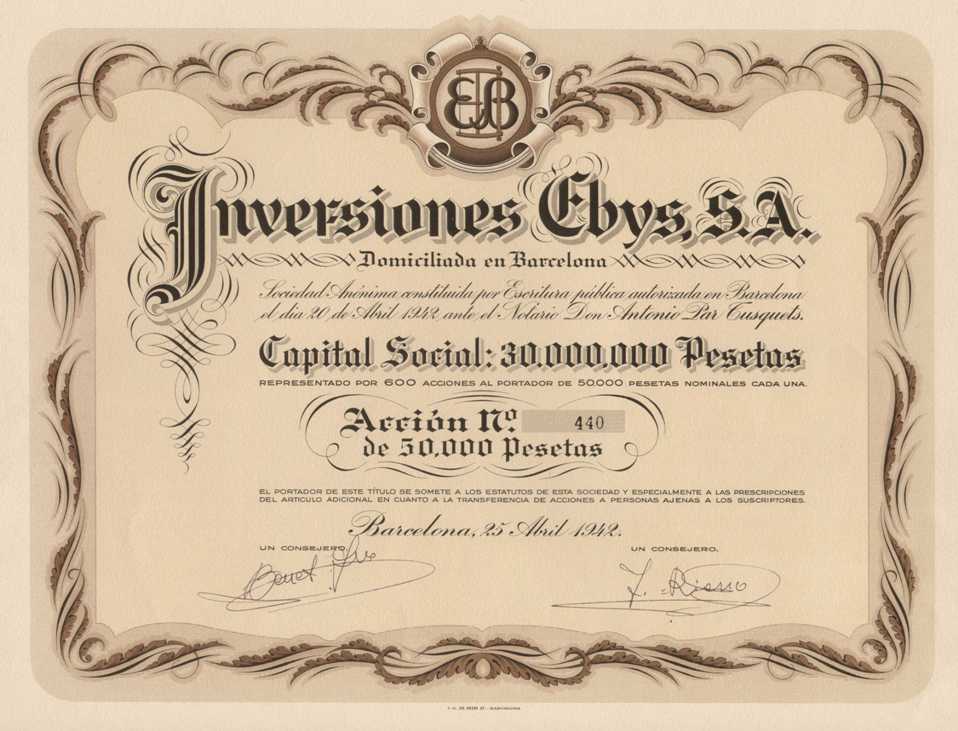 1942 Acción de 50.000 Pesetas. Curiosidad, acciones de 50.000 Pesetas.
