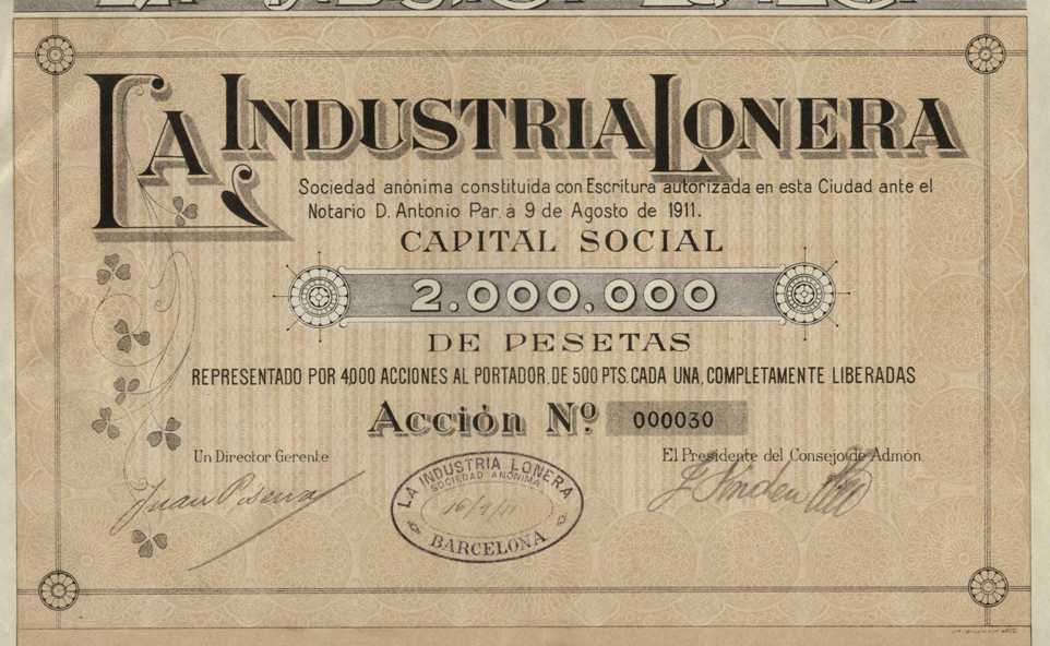 1941 Acción de 500 pesetas al portador.