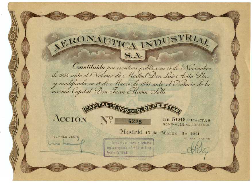 De la 21ª emisión. Inscrita en el Registro Mercantil de la Provincia con fecha 2 de junio de 1900. Capital: 558.232.500 Pesetas. Según acuerdo tomado por el consejo de administración del día 9 de septiembre de 1961, con arreglo a la autorización concedida por la Junta General extraordinaria de Accionistas, celebrada el día 8 deSigue leyendo «El Águila Sociedad Anónima»